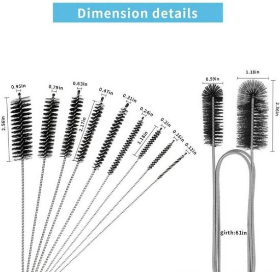 11 delige Schoonmaak borsteltjes- Schoonmaak Ragertjes-Buizenreiniger-Aquarium Pijp Reinigingsborstel -zwart