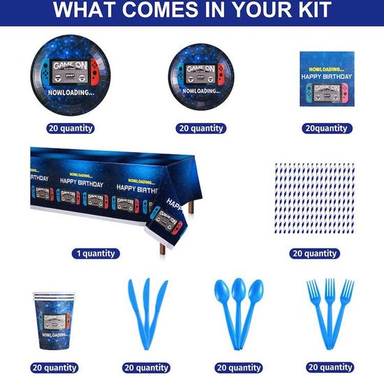 Deze complete set voor 20 personen bevat alles wat je nodig hebt voor een onvergetelijk verjaardagsfeest.