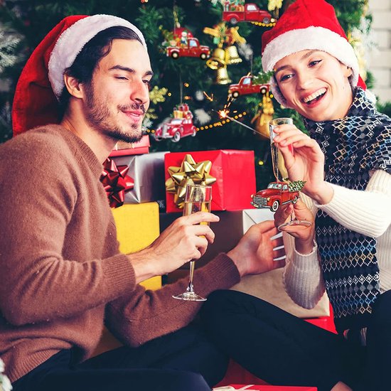 Sfeervol: Voeg een nostalgische touch toe aan je kerstdecoraties met de charmante rode vrachtwagens.
