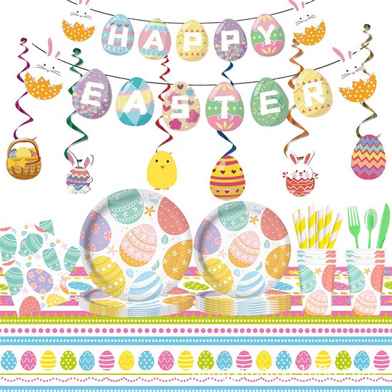 Maak je klaar om Pasen in stijl te vieren met deze fantastische 81-delige feestdecoratieset! Ontworpen met de levendige kleuren en feestelijke sfeer van Pasen, bevat deze set alles wat je nodig hebt om een gedenkwaardige en betoverende sfeer te creëren.