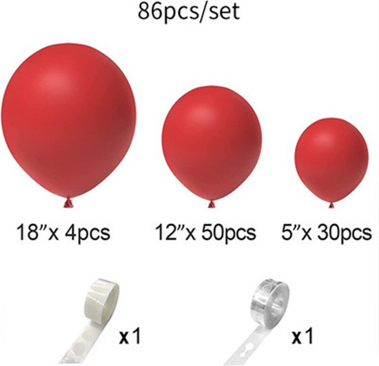 86-delige Rode Macaron Ballonnenset - Ballonnenboog Feest