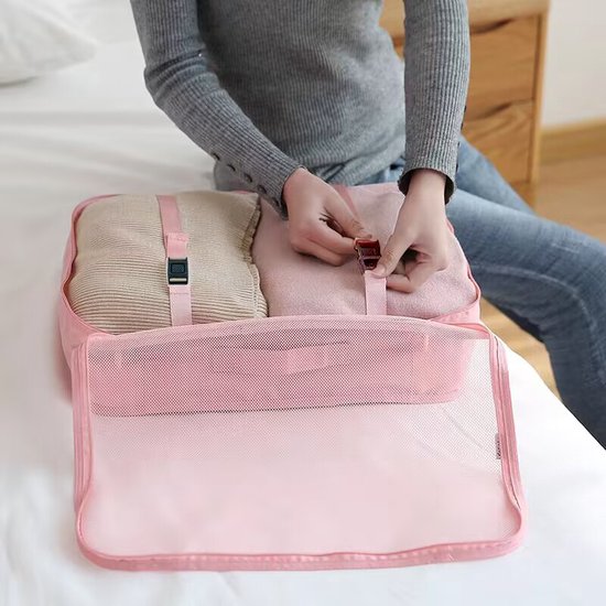 Ruimte-optimalisatie met Compressiekubussen: Met de compressiekubussen kunt u uw kleding samendrukken, waardoor er extra ruimte in uw koffer ontstaat. Dit betekent dat u meer kunt inpakken zonder concessies te doen aan uw stijl.