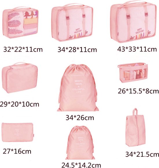 Deze negen-delige reisopbergtassenset is een toonbeeld van stijlvolle en doordachte organisatie, waardoor uw reis soepeler en plezieriger wordt, terwijl uw bagage altijd in topconditie blijft.