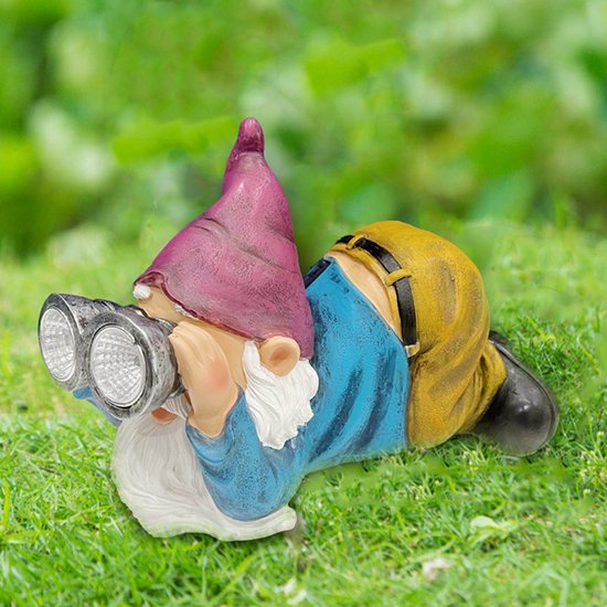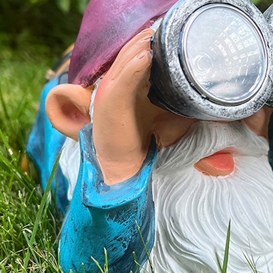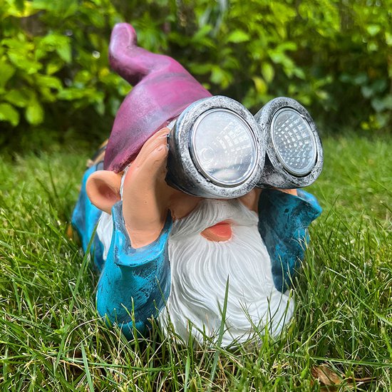 Deze schattige elf zonne-energie lamp met telescoop is gemaakt van hoogwaardig harsmateriaal en biedt heldere verlichting voor uw tuin of buitenruimte. Het heeft een IP55 beschermingsklasse, wat betekent dat het bestand is tegen water en stof, en kan 6-8 uur lang branden na een volledige lading. De creatieve elf met telescoopvormig ontwerp en opvallende slaaphouding maakt het een charmante decoratie voor uw tuin. Bovendien is het milieuvriendelijk en kosteneffectief dankzij de zonne-energie.