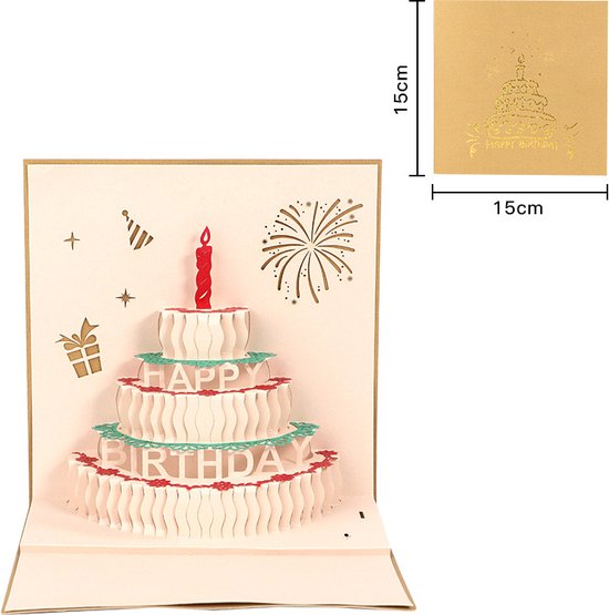 De creatieve 3D-verjaardagskaart is een speciale cadeaukaart met opname-, licht- en kaarseffecten, waardoor een unieke ervaring ontstaat voor het vieren van een verjaardag. De kaart toont een 3D-ontwerp van een verjaardagstaart en heeft een thema van dankbaarheid en goede wensen.