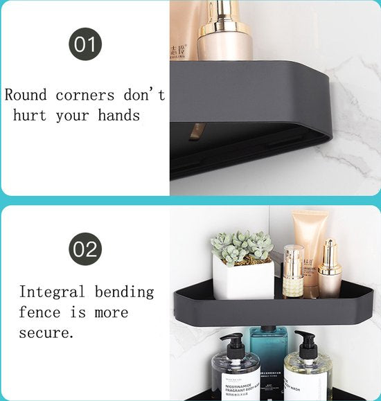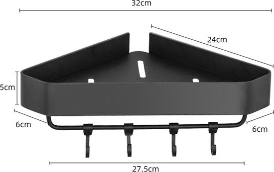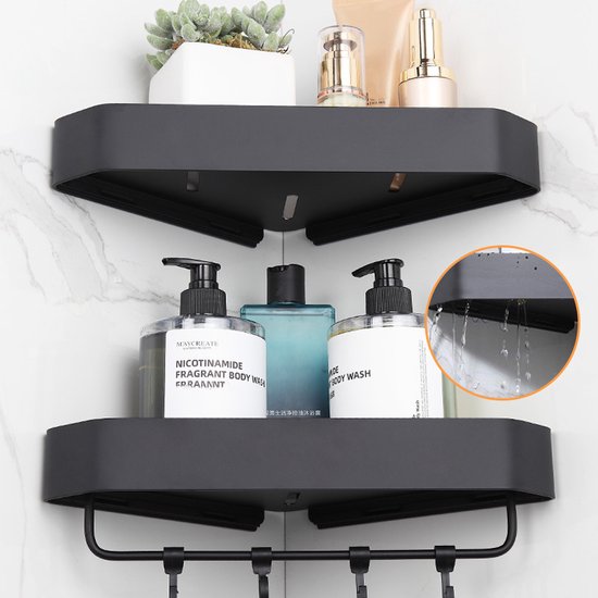 Ontdek het perfecte opbergrek voor je badkamer met onze prachtige zwarte driehoekige wandplank! Met zijn stijlvolle uitstraling, handige functies en eenvoudige installatieopties is dit rek de ideale oplossing om je badkamer georganiseerd en stijlvol te houden.