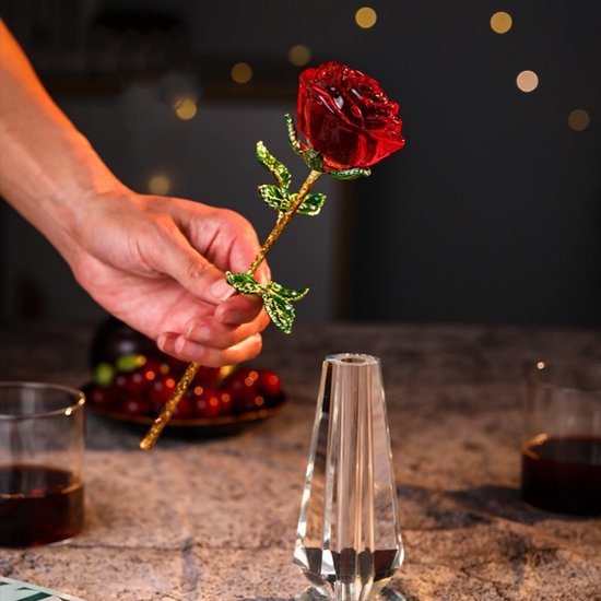 Glazen Vaas met Rode Roos - Decoratief & Elegant - Rood