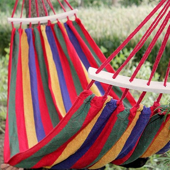 Duurzaamheid: De hangmat is gemaakt van hoogwaardig canvas materiaal, wat zorgt voor duurzaamheid en weerbestendigheid. Het kan de elementen van buiten weerstaan en biedt tegelijkertijd een zacht en comfortabel oppervlak voor het lichaam.