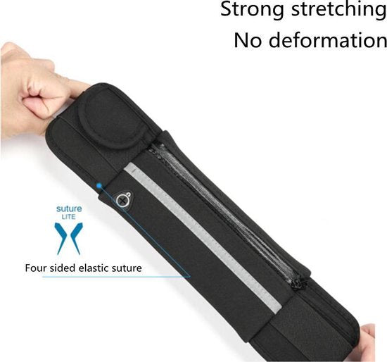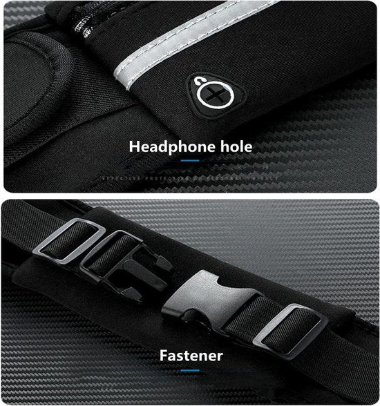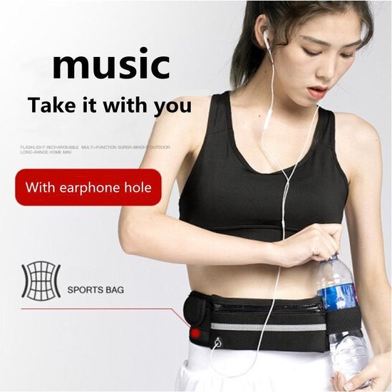 Het ritsvak aan de voorkant kan uw smartphone, contant geld, kaarten bevatten. Met de hoofdtelefoonaansluiting kunt u tijdens het hardlopen genieten van muziek.