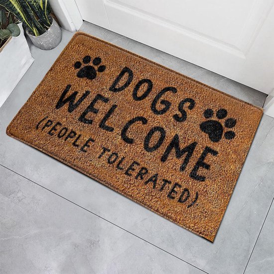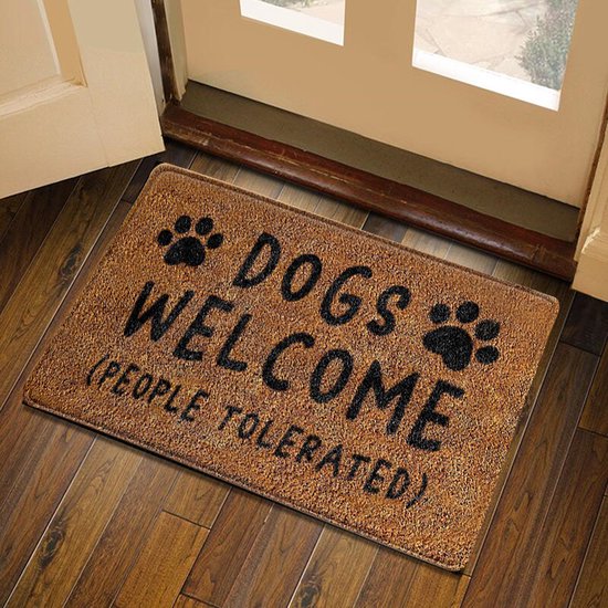 Humoristische en Absorberende Deurmat voor Hondenliefhebbers -"DOGS WELCOME (PEOPLE TOLERATED)"-Droogloopmat binnen 48*81cm