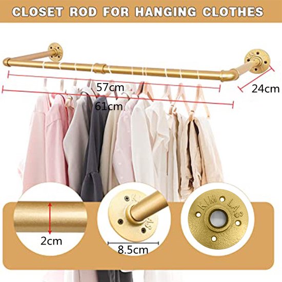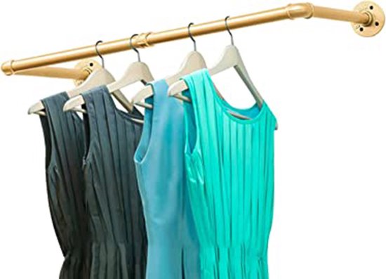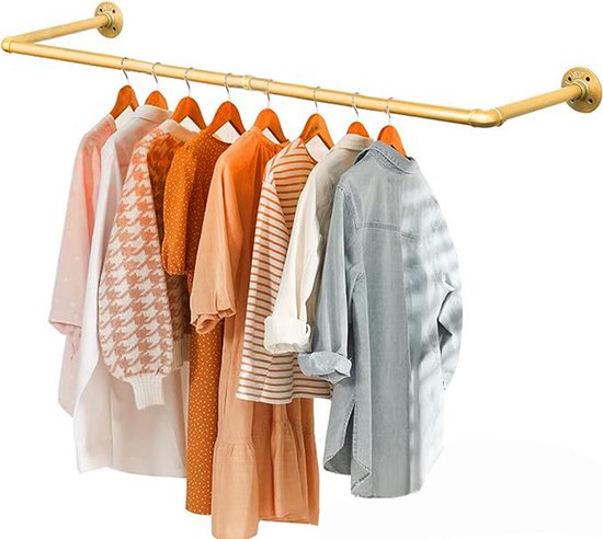 Industriële Buis Kledingrekken - Metalen Kledingrekken - Draagvermogen tot 30 kg -Robuust & Stijlvol voor Thuis en Winkel-57x24x61 cm-goud