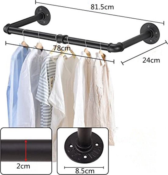 Robuuste Constructie: Gemaakt van hoogwaardige materialen, biedt dit kledingrek een stevige en duurzame ophangoplossing voor uw kleding. De afmetingen van81.5cm breed, 78 cm hangruimte en 24 cm diepte bieden voldoende ruimte en stabiliteit.