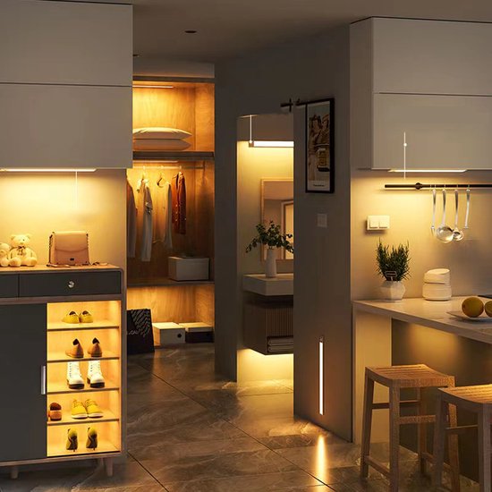 - Driekleurige verlichting: Pas de sfeer aan met drie kleuropties - warm wit, natuurlijk wit en koel wit - voor de perfecte verlichting in je kast.