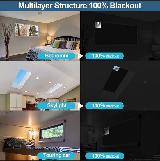 - 100% verduisterend multilayer-materiaal waardoor bijna geen licht binnenkomt en slapen beter lukt.