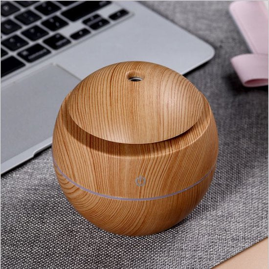 Laat onze prachtige houtnerf ronde luchtbevochtiger en aromatherapie machine je voorzien van de ideale luchtvochtigheid, heerlijke geuren en een comfortabele ambiance. Een onmisbaar product voor kantoren, slaapkamers, studeerkamers en meer.