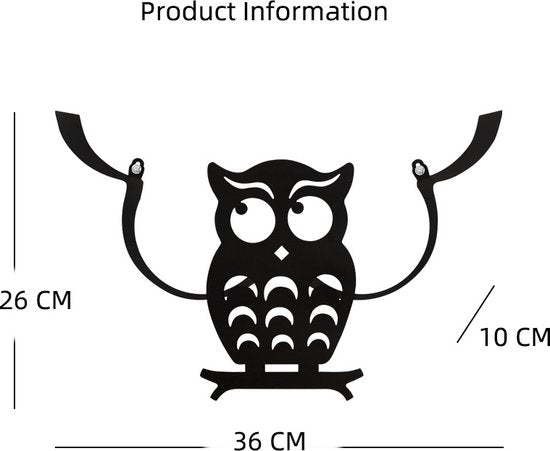 Een functionele en decoratieve toevoeging aan je badkamerinrichting is de metalen wandmontage opbergplank in de vorm van een uil. Met afmetingen van 36x26x10 cm en een zwarte kleur, biedt deze toiletrolhouder een handige oplossing voor het opbergen van toiletrollen.