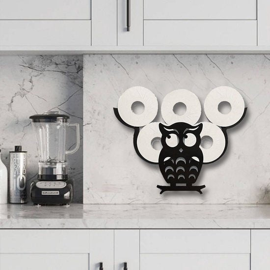 - Functie: Functionele en decoratieve metalen wandmontage opbergplank in de vorm van een uil voor het opbergen van toiletrollen.