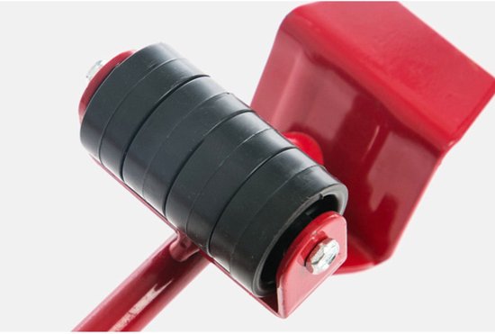 De hefboom is eveneens voorzien van wieltjes en wordt gebruikt om het voorwerp in de juiste richting te kunnen sturen.