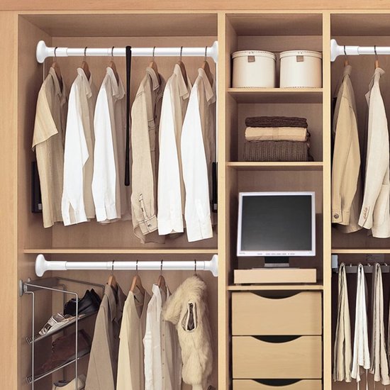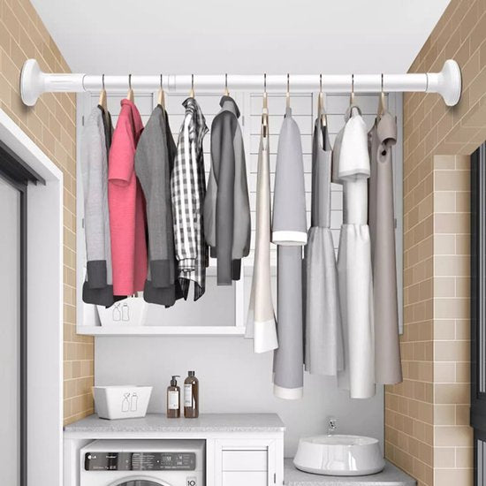 - Verstelbaar 70–120 cm: past in kasten, tussen muren en als douchegordijnstang.