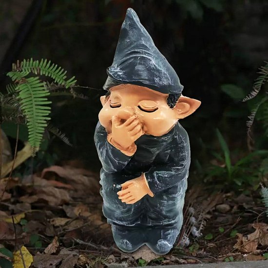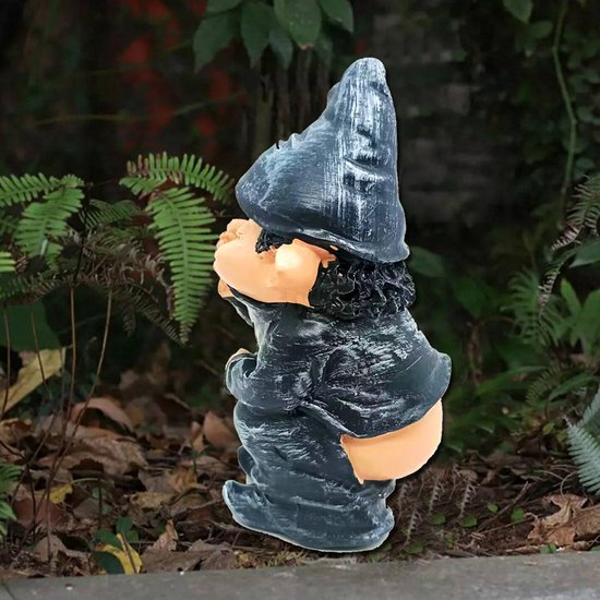 "Voeg een vleugje ondeugendheid, humor en tijdloze schoonheid toe aan je tuin met dit unieke kabouterbeeldje van hoogwaardig synthetisch hars." Hoogwaardig synthetisch hars: Gemaakt van duurzaam en weerbestendig materiaal dat bestand is tegen regen, zonlicht en vorst.
