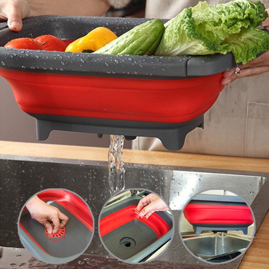 Opvouwbare wasbak, draagbare opvouwbare wasbak, afvoermand,