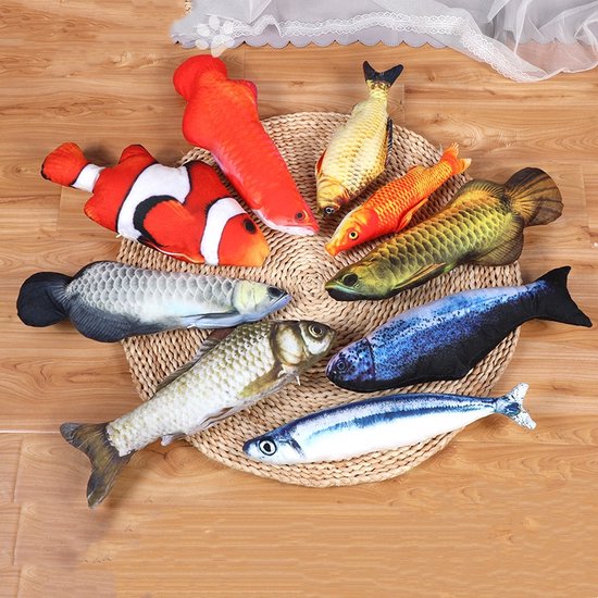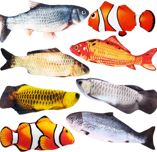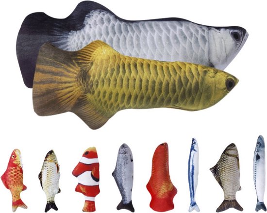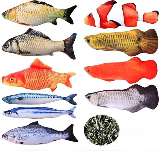 Maak jouw kat blij met deze set van 10 realistische visvormige kattenspeeltjes! Deze set bestaat uit 8 kleinere en 2 grotere vissen, perfect om variatie te bieden aan jouw kat. Elk speeltje is gemaakt van zacht pluche materiaal en gevuld met hoogwaardige catnip (kattenkruid) om het natuurlijke speelgedrag van je kat te stimuleren. Deze kleurrijke en gedetailleerde visontwerpen zorgen voor urenlang speelplezier en zijn perfect om mee te jagen, te knuffelen en te stoeien.