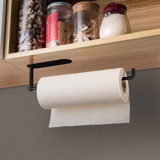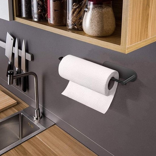 Eenvoudig en snel te bevestigen door de zelfklevende plakstrik óf door middel van het bijgeleverde setje schroeven. Zowel staand als liggend doet deze keukenrolhouder zijn werk.
