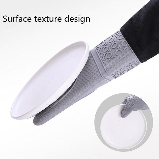 Antislip en veilig: door het gestructureerde oppervlak ontstaat een stevige en stevige grip. Bijzonder veilig bij het dragen van hete en olieachtige potten of bakplaten.