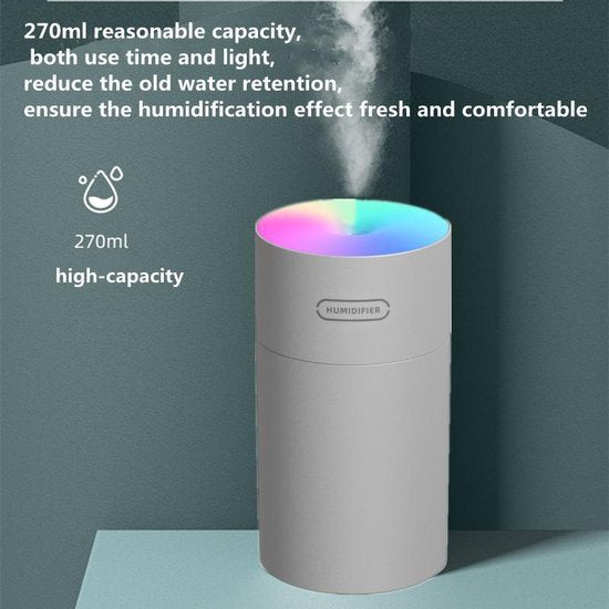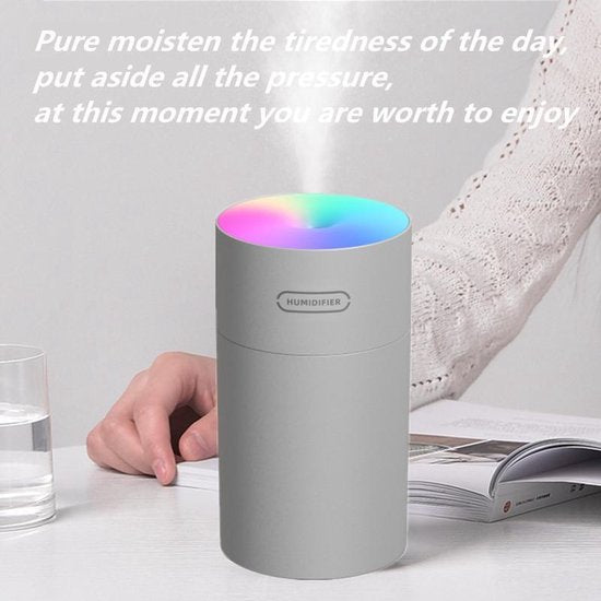 Draagbare mini-luchtbevochtiger is gemakkelijk mee te nemen, zeer geschikt voor op reis, thuis, op kantoor of op andere plaatsen. U kunt altijd USB aansluiten, de datakabel kan worden aangesloten op de computer, autolader en mobiele stroom, handig om gebruik
