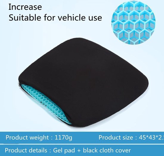 Het gelkussen bevat een antislip stoffen hoes, de stoffen hoes heeft een ritssluiting, het zitkussen kan voor het wassen worden verwijderd, het is een draagbaar gelzitkussen.