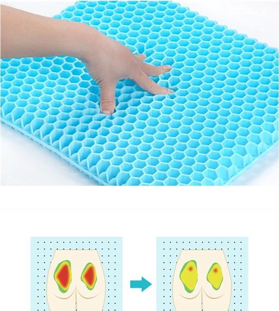 Het gelzitkussen is gemaakt van zeer elastisch TPE-gelmateriaal met een constante temperatuur. Het kan de luchtcirculatie verhogen, heeft dus een goede ventilatie, voorkomt warmteophoping en wordt niet benauwd, zelfs als je lang zit.