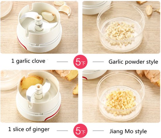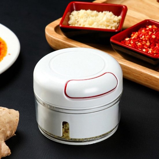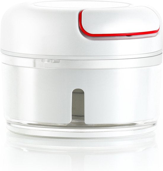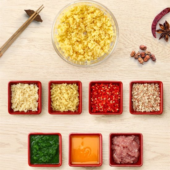 Deze trekkoord groentesnijder is ideaal voor het snel fijn snijden en hakken van groenten, fruit, kruiden, peper etc.