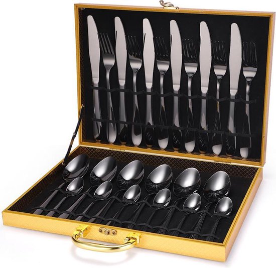Roestvrijstalen bestekset 24-delig met koffer - zwart