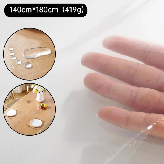 Bescherm je eettafel eenvoudig tegen vlekken, krassen en vocht met dit transparante tafelkleed van 180 x 140 cm. Dankzij het heldere PVC-materiaal blijft het design van je tafel zichtbaar, terwijl je profiteert van maximale bescherming en gebruiksgemak.