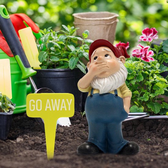 Uniek ontwerp: Schattige kabouter met humoristisch "GO AWAY" bordje