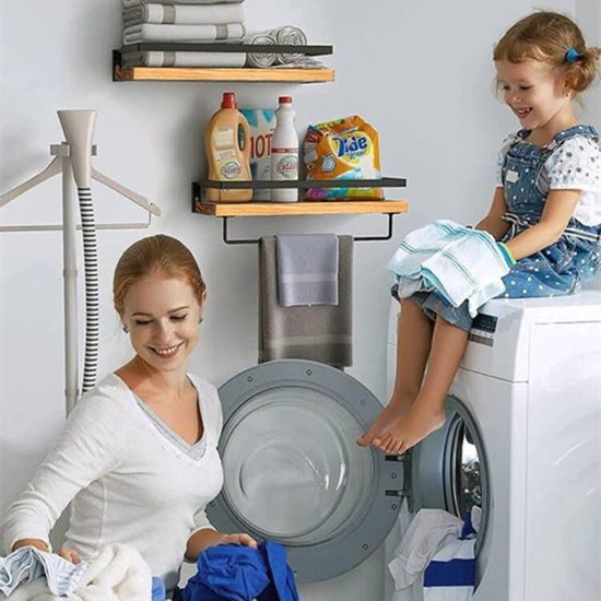 Deze wandgemonteerde wandrek is ideaal voor gebruik in badkamers en keukens. Hij is gemaakt van hoogwaardig dennenhout en heeft een strakke en moderne uitstraling. De plank heeft twee lagen, wat voldoende ruimte biedt voor het opbergen van verschillende items.