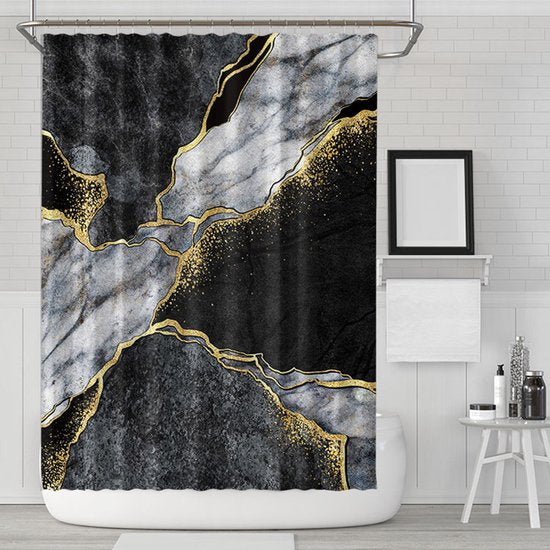 Elegant ontwerp: Met een marmerpatroon creëert dit douchegordijn een rustgevende en comfortabele badomgeving. Het eenvoudige maar stijlvolle ontwerp voegt een vleugje elegantie toe aan je badkamer.