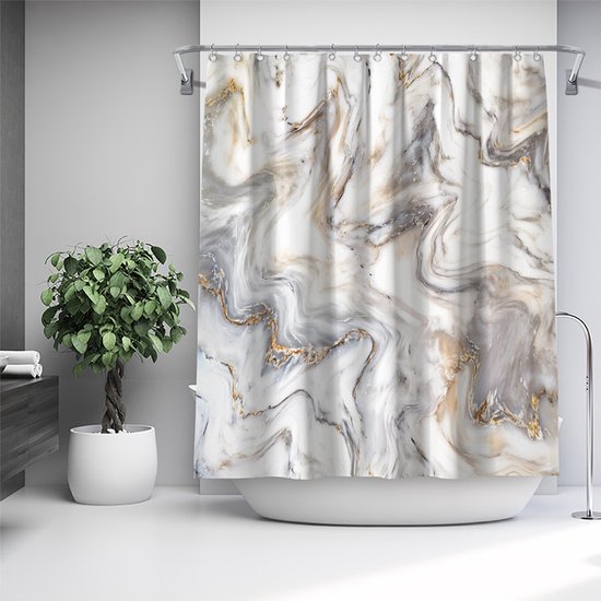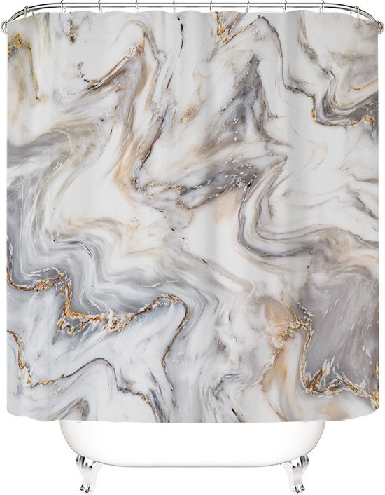 Elegant ontwerp: Met een abstract marmeren patroon creëert dit douchegordijn een rustgevende en comfortabele badomgeving. Het eenvoudige maar stijlvolle ontwerp voegt een vleugje elegantie toe aan je badkamer.