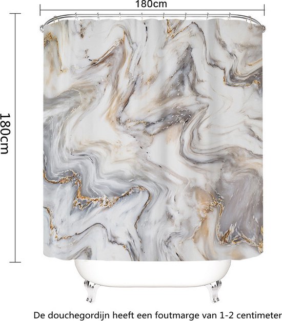 Transformeer je badkamer in een oase van rust en elegantie met ons hoogwaardige polyester douchegordijn. Het transparante abstract marmerenpatroon creëert een ontspannen sfeer, terwijl de verzwaarde zoom ervoor zorgt dat het gordijn op zijn plaats blijft zonder aan je lichaam te plakken. Met de eenvoudige installatie, dankzij de versterkte bovenkant en roestbestendige metalen ringen, kun je moeiteloos genieten van een verfrissende en probleemloze douche-ervaring. Bestel nu en geef je badkamer een vleugje elegantie en functionaliteit!