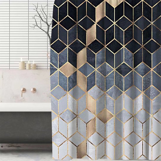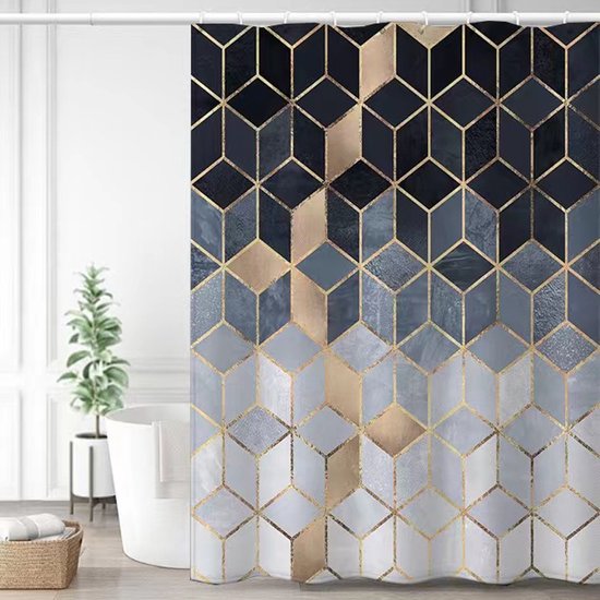 Unikorf Douchegordijn 180x200 grijs marmerpatroon