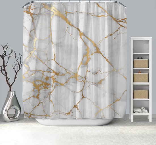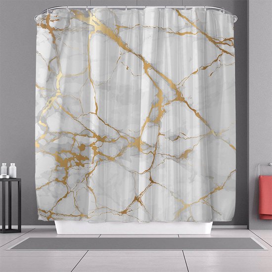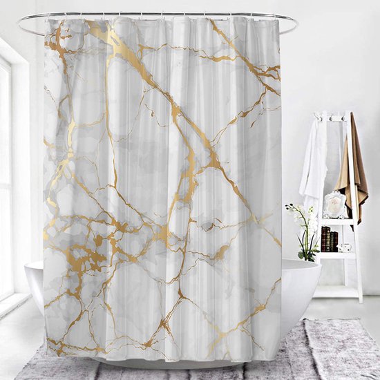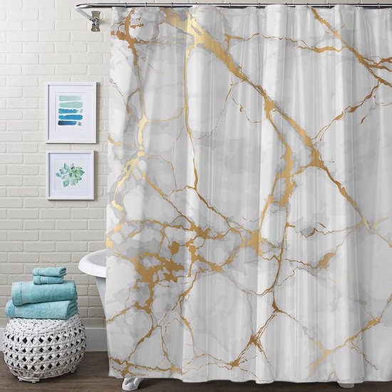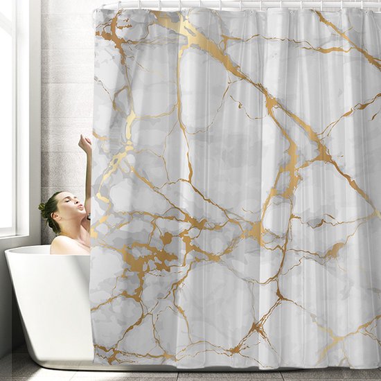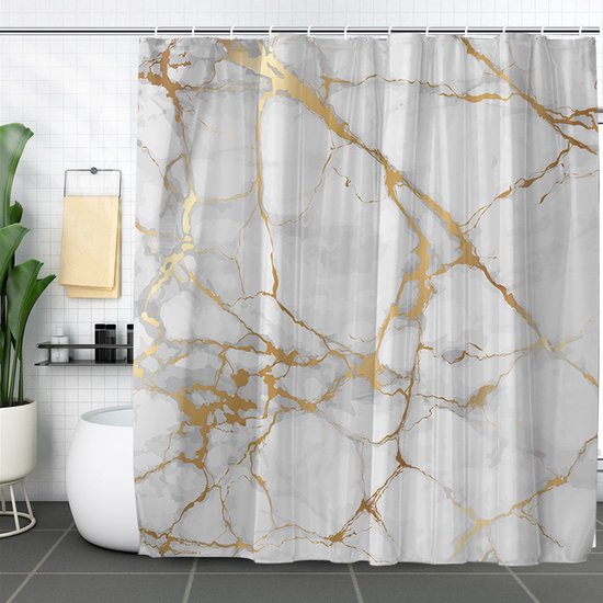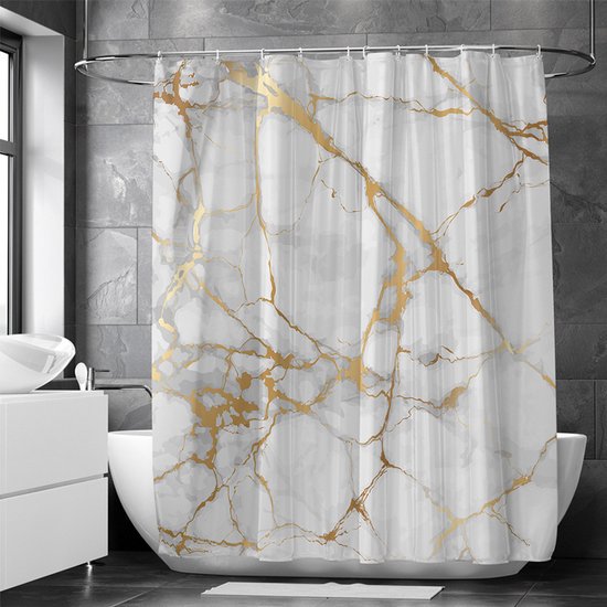 Transformeer je badkamer in een oase van rust en elegantie met ons hoogwaardige polyester douchegordijn. Het transparante marmerpatroon creëert een ontspannen sfeer, terwijl de verzwaarde zoom ervoor zorgt dat het gordijn op zijn plaats blijft zonder aan je lichaam te plakken. Met de eenvoudige installatie, dankzij de versterkte bovenkant en roestbestendige metalen ringen, kun je moeiteloos genieten van een verfrissende en probleemloze douche-ervaring. Bestel nu en geef je badkamer een vleugje elegantie en functionaliteit!
