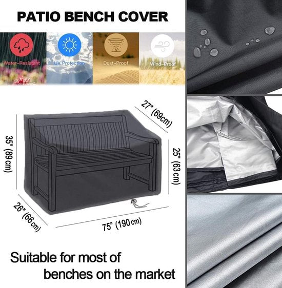 De afmetingen van de hoes zijn 190x66x89cm en bieden plaats aan een 4-zits tuinbank. Controleer voordat je deze hoes koopt de afmetingen van je tuinbank.